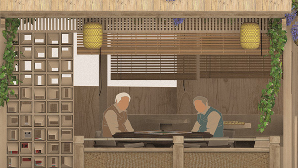 北京林业大学 园林学院 副院长本案从居民临时搭建的,用来补足日常生活功能的棚子中提取空间原型,重新对其抽象造型,聚为共享的“棚塘空间”,立意新颖,紧扣主题,探索出的不同空间趣味性十足。