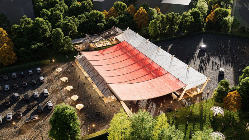 设计方案创意十足,通过轻质结构实现多功能组合,既保留了历史文化,又提升了城市活力,灵活应对不同场景需求,展现了独特的建筑美学。