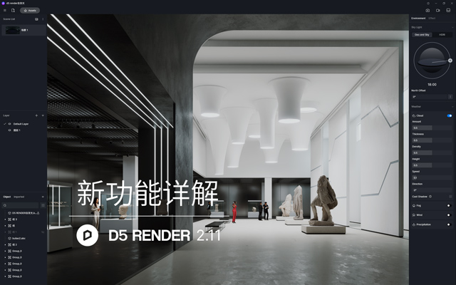 D5 SR (D5 Super Resolution) 是D5自研的超级分辨率采样算法,结合多通道渲染特征图和神经网络超分图像算法。有效提升复杂场景和大尺寸图片渲染速度,节省 40%-300% 的时间。