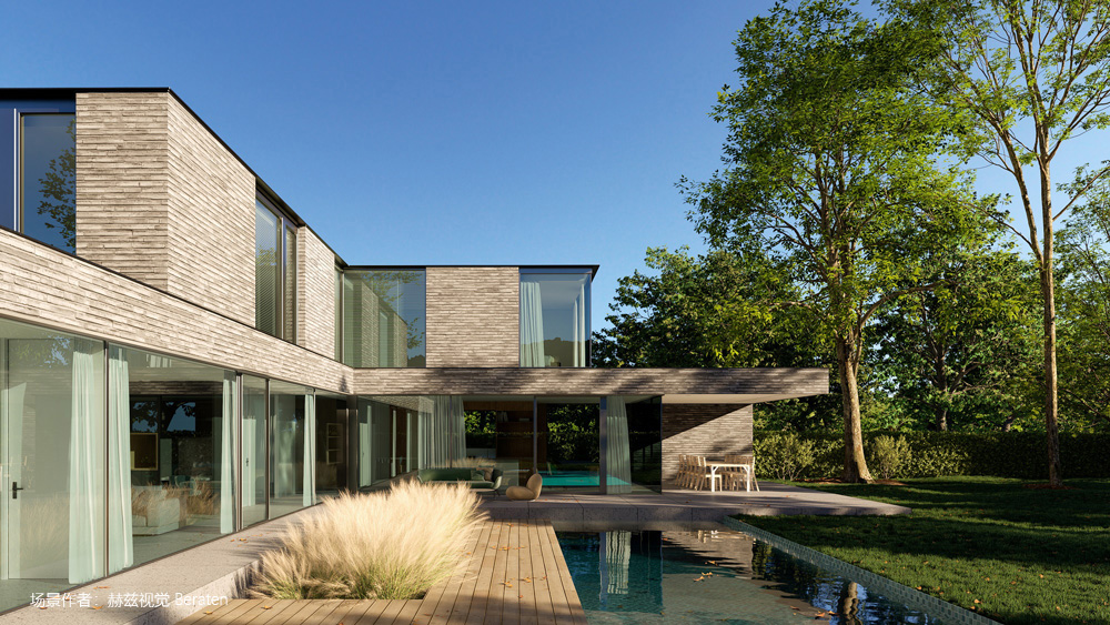 渲染出图后,在局部重绘模块里选中天空、水体、植物或人物区域,即可智能进行“原图重绘”,在尊重图片原始结构的前提下深化画面细节,优化视觉效果。