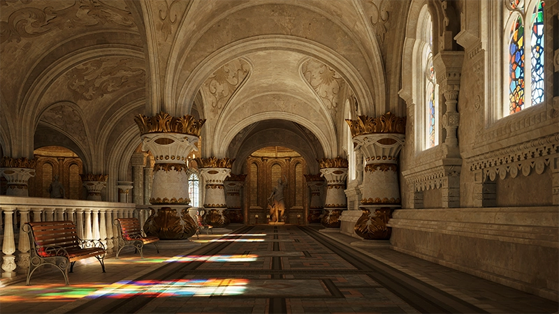D5 渲染器 2.10 版本引入了全新的实时全局照明解决方案:实时路径追踪(Real-time Path Tracing)。基于 ReSTIR GI 的框架,使用路径追踪构建光照缓存,让实时全局照明进一步逼近 Ground Truth(标准结果),提升了实时交互的真实性和沉浸感。