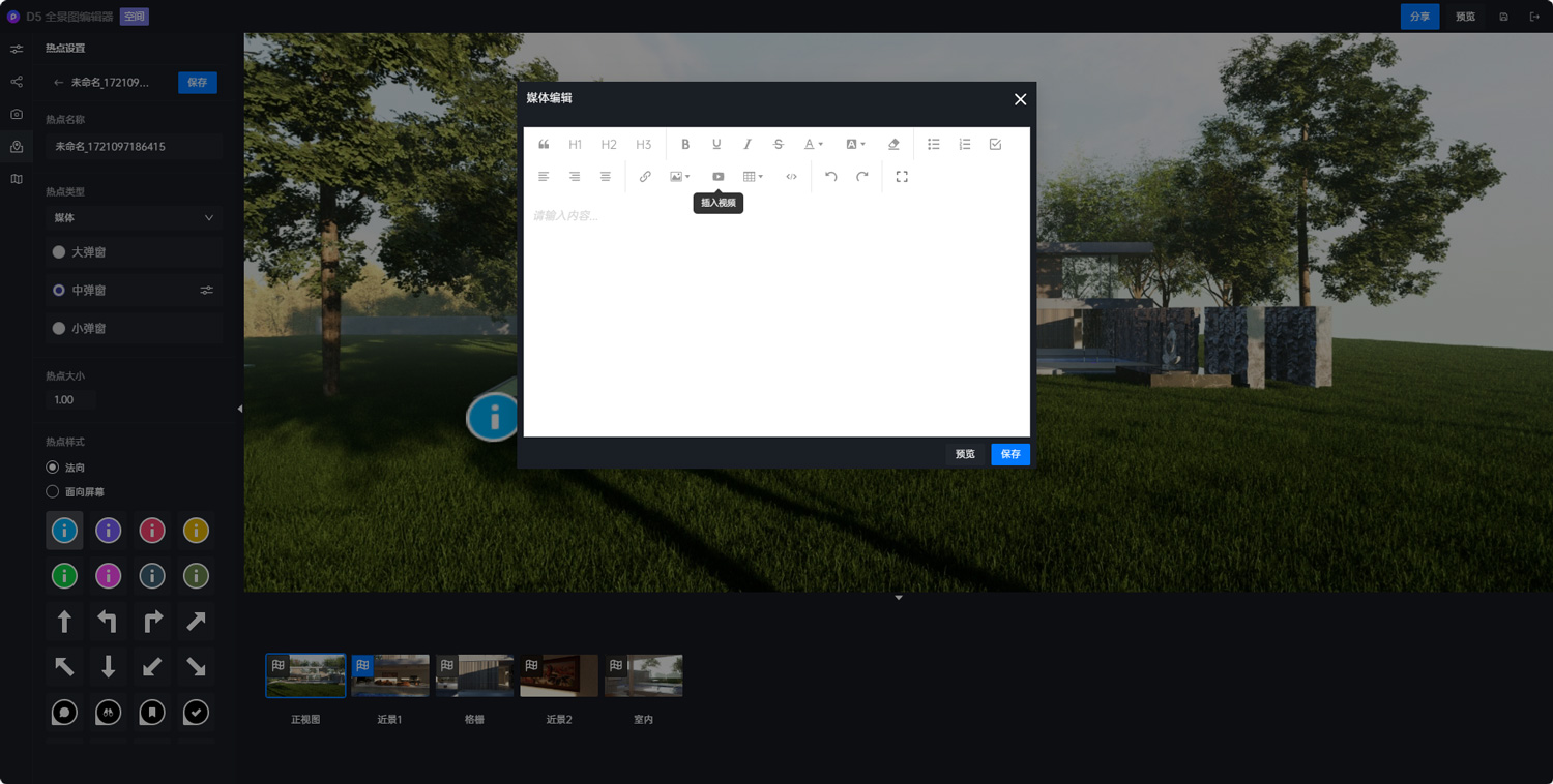 在答疑环节,徐春浩针对团队版功能,向清华设计院设计师解答了如何拆分工作集进行多人编辑等问题,并在D5 Showreel 平台展示了如何在全景漫游中插入编辑热点和视频弹窗,在保障数据安全的情况下,以更加生动直观的方式向甲方展示设计成果,充分传达设计创意。