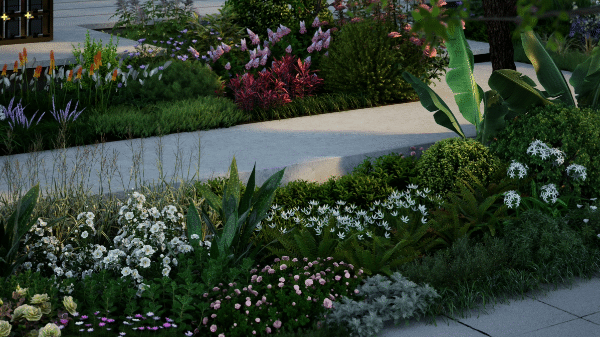 不同风格的花境组合同步上架。精心搭配,拖拽即用,可快速完成庭院、景观节点、建筑配景等的布景工作。