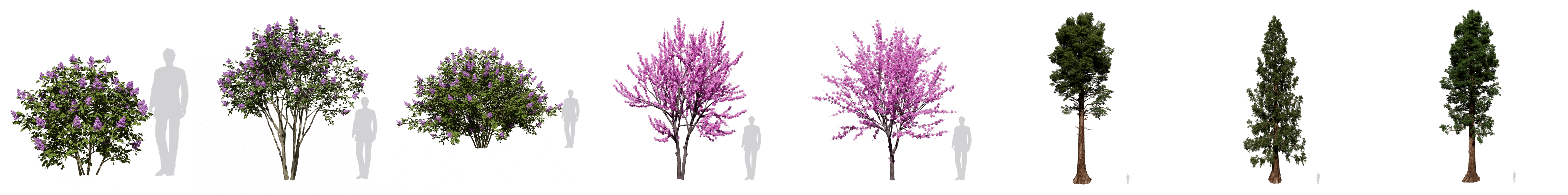 新增不同造型的加拿大紫荆和巨杉。目前D5素材库中的针叶树多为亚洲本土品种,包括红豆杉、罗汉松等,更贴合本土项目需求。