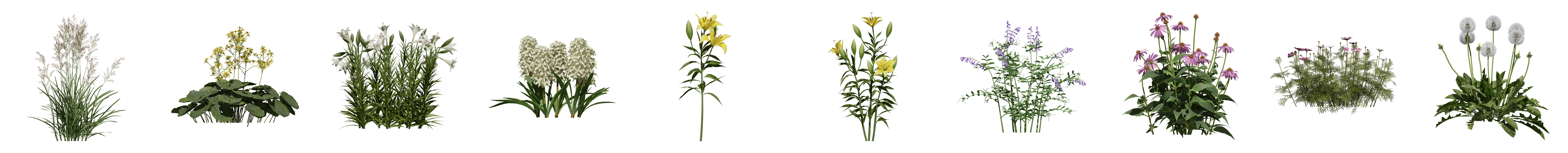 包括丁香、圆锥绣球、代茶冬青等灌木,百合、郁金香、蒲公英等多种观花草本,品种丰富,更全面地覆盖公园、庭院、花境、婚礼宴会等项目所需的植物素材。