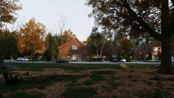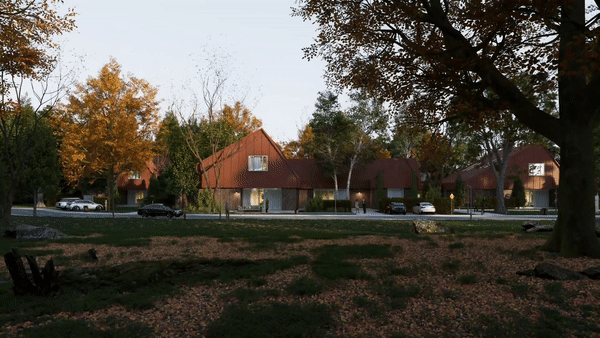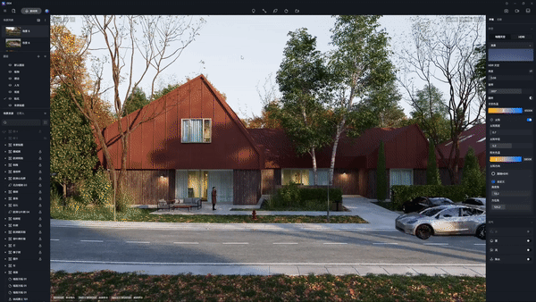 建筑场景渲染效果图,离不开环境氛围的烘托。本文将通过一个室外建筑场景,通过植物整体搭配、草地细节和街景布置等方面,为大家展示如何为场景营造出浓厚的秋日氛围。
