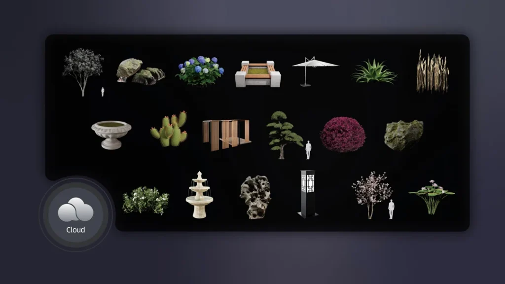 笔刷、散布、路径预设、环境特效参数预设均可存储在 D5 Studio 团队云端,并与D5账号关联,便于异地办公调取预设和跨项目复用,提升配景效率。