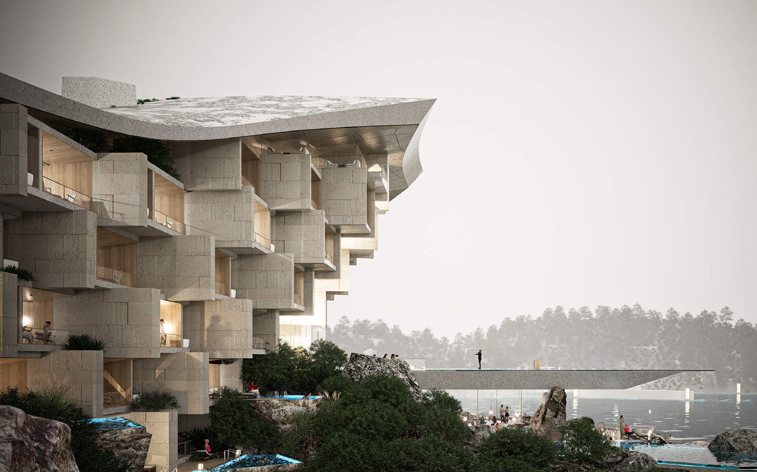 雕刻山体丨浙江嵊泗花鸟悬崖酒店设计国际邀请赛方案