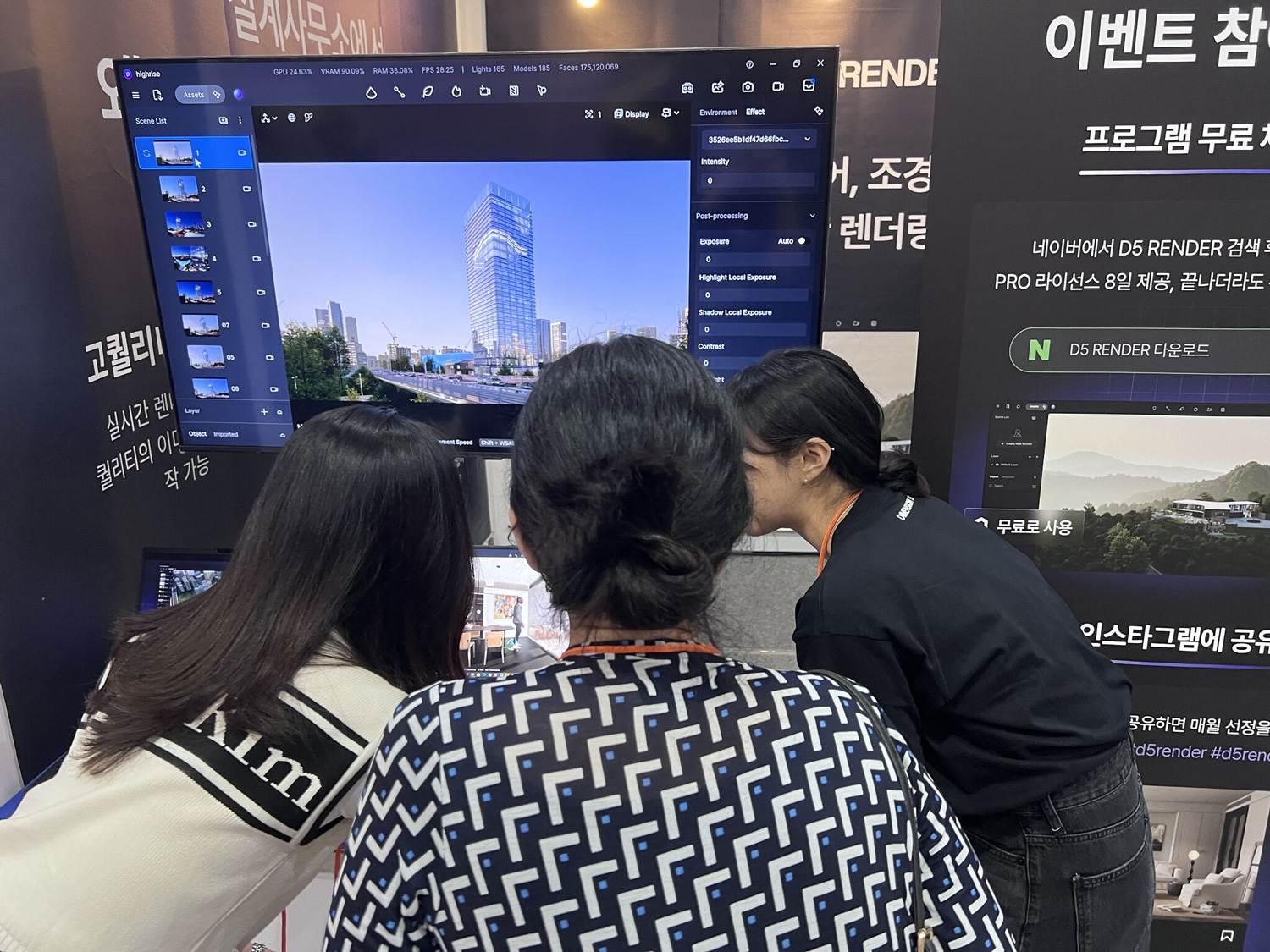 2024 韩国建筑周于首尔举办,作为亚洲建筑行业的盛会,本次活动汇集了一众业内专业人士、设计师和前沿技术爱好者。活动上,D5与来自各国的建筑工作者互动交流,展示了领先的实时渲染以及 AI 技术,与大家共同探讨科技如何助力创意可视化,提升设计师的工作效率及体验。