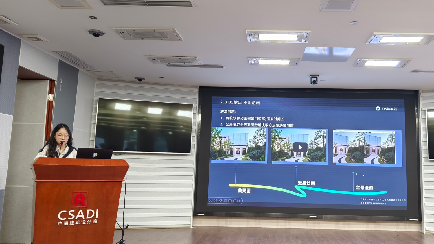 本次研讨会以“降本增效,绿色发展”为主题,D5以实际项目为例,向中南建筑设计院的一线设计师们分享了先进技术如何赋能建筑设计,通过实操演示了D5实时渲染+AI+PCG 为建筑设计流程带来的全新价值。