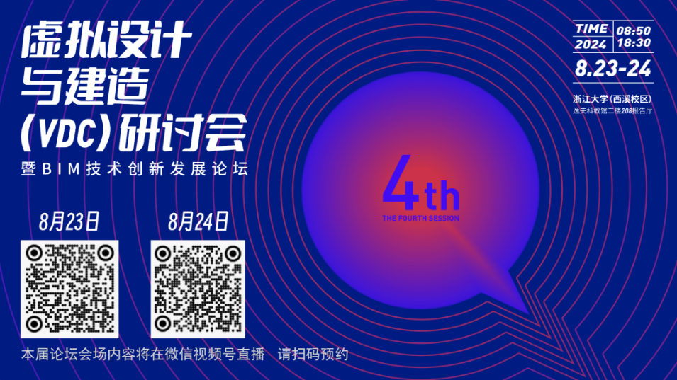 第四届虚拟设计与建造(VDC)研讨会暨 BIM 技术创新发展论坛,将于 8 月 23 日 – 24 日,在浙江大学(西溪校区)举办,D5受邀参与会议,进行以“多模态场景编辑重塑空间叙事”为主题的分享。活动将进行线上直播,欢迎扫码预约。