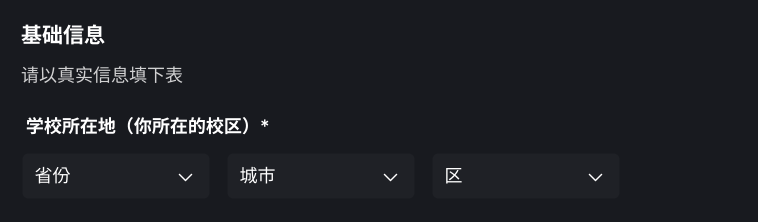 学校所在地:填写你所在校区的物理位置。以“东南大学九龙湖校区”为例,学校所在地应选择“江苏省-南京市-江宁区”,即东南大学九龙湖校区所在的物理地点。