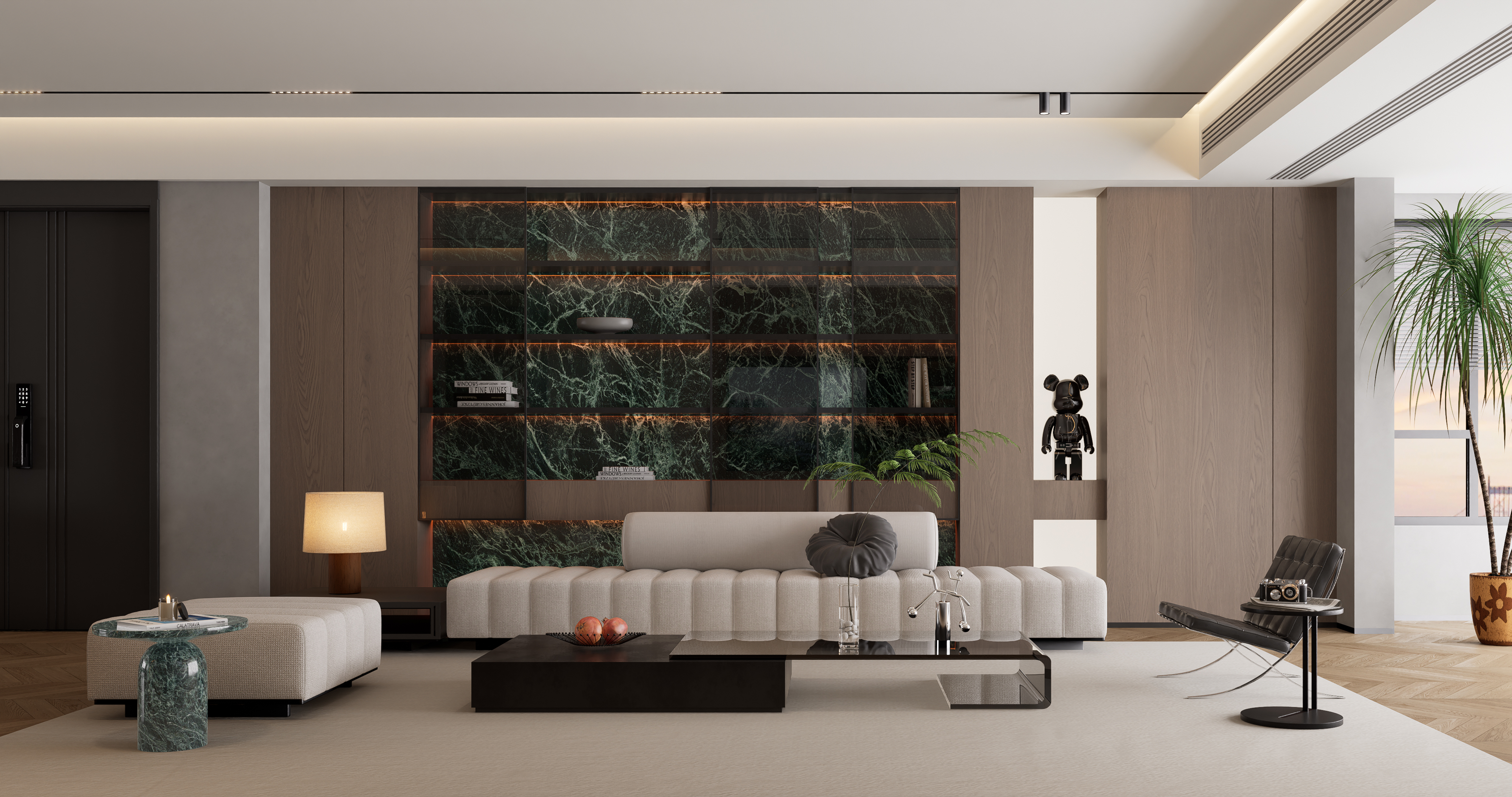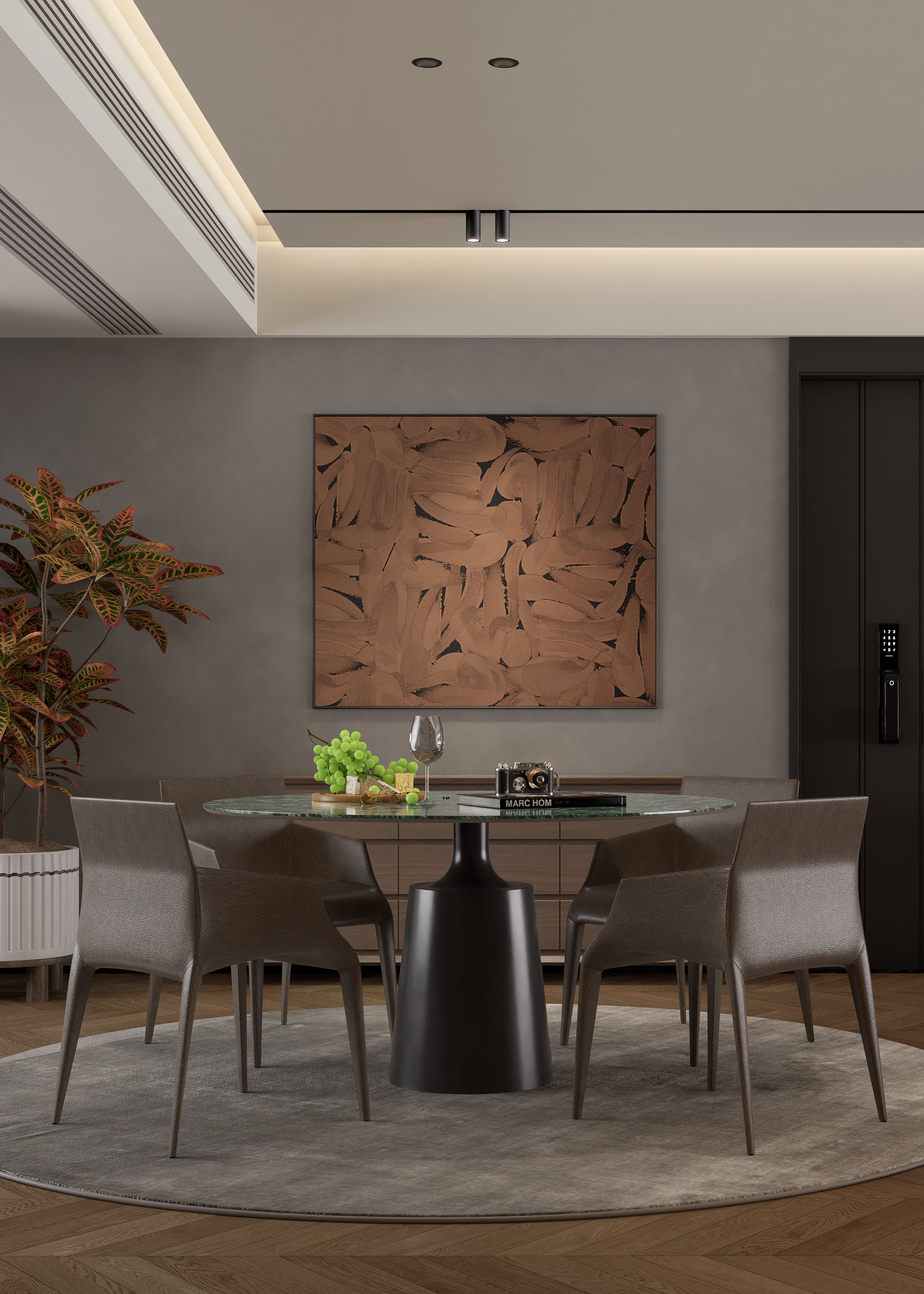 室内设计追求的目标是整体美感,作为一种塑造美的环境的创造,必须以整体的目光审视和组织空间的各个元素。在设计过程中,从黑白草图到精致效果展示,是具象化体现设计师创意落地的过程。