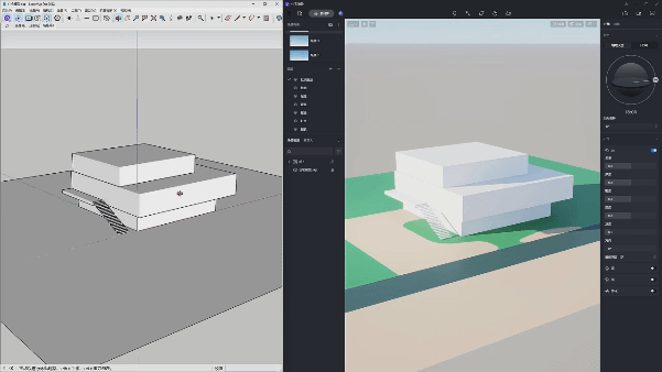 借助Sketchup-D5实时渲染工作流,5分钟就能完成一个室外建筑场景的搭建。感受更加顺畅的工作流,带来效率和效果的双重提升。
