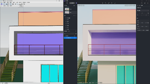 实时同步意味着D5的画面视角会和SU保持一致,并且我们对模型的任何修改,都会即时反映在D5中,不需要再手动导出、导入模型。