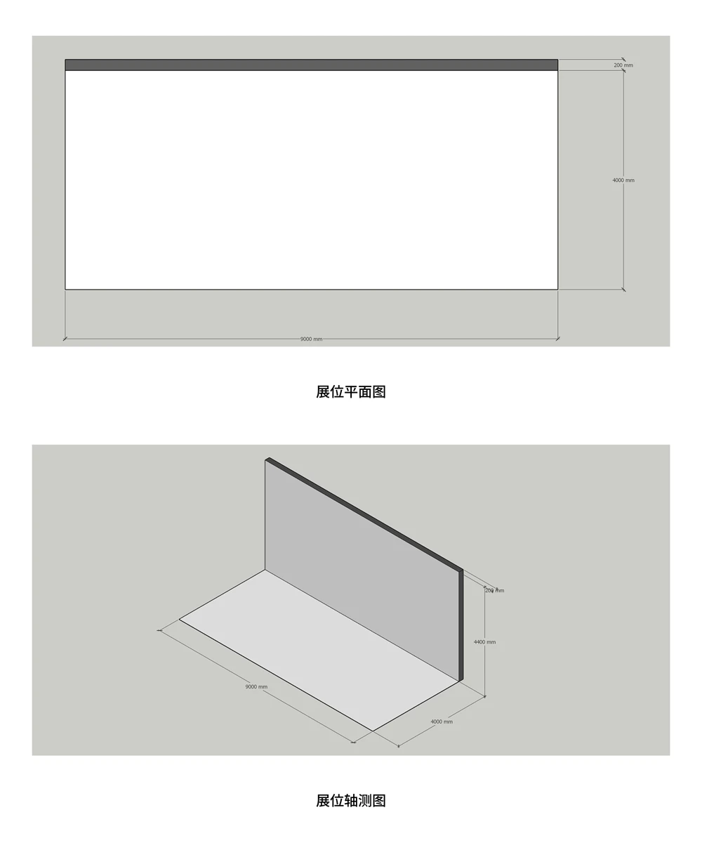 墙面:展位上方9米为上方共用墙面,属于必须有的结构,设计时需考虑将其巧妙融入整体方案,用于品牌与内容展示;
