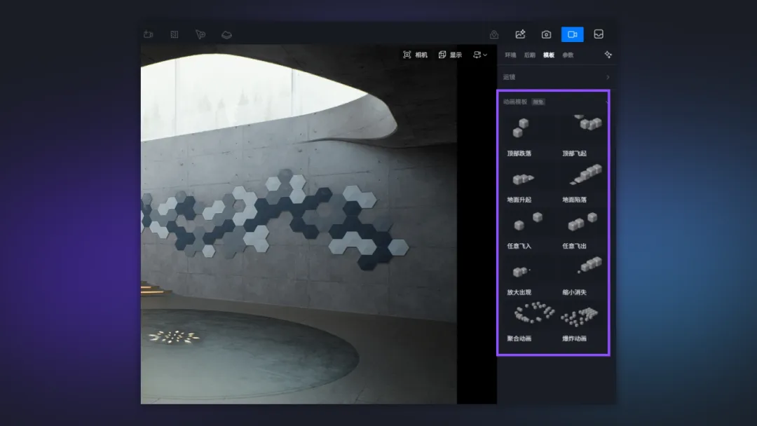 点击套用“动画模板”,一键生成各类丰富的生长动画,在实时视口中把握最佳效果,为静态物体注入“生长”的活力,生动展示设计方案。