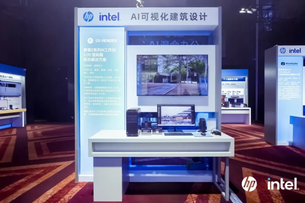 活动展示了惠普在 AI 技术领域取得的最新研究成果,针对 AI PC 如何推动企业数智化转型做了深入讨论。同时,D5演示了如何利用 AI 助力建筑设计可视化,以及与惠普 Z 系列 AI 工作站优秀的适配性。