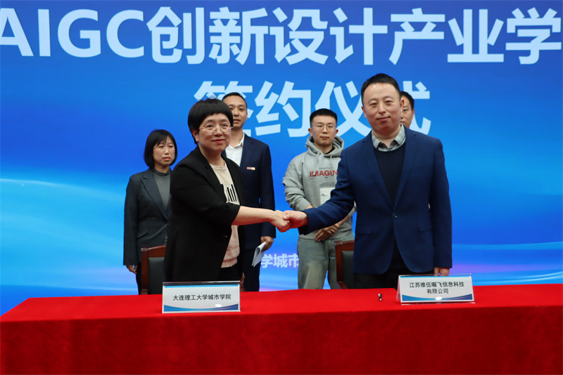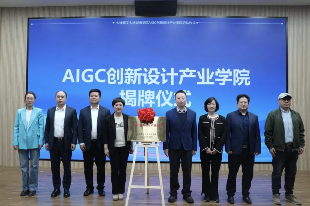 D5赵明军、大连人工智能计算中心辛延魁、大连市建筑设计研究院有限公司单颖、大连景泰规划设计有限公司曹雷、中国建筑东北设计研究院有限公司大连分公司马春旺、大连中大数谷教育科技有限公司方雯静、大连建筑设计研究所有限公司韩则冰共同为产业学院揭牌并签署联合战略协议。未来企业与大连理工大学城市学院将在人才培养、技术研发、场景应用、标准构建四大领域开展合作,共建AIGC创新设计联盟。
