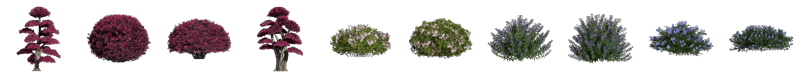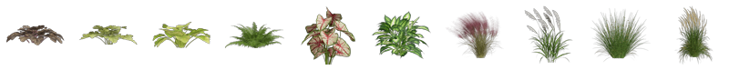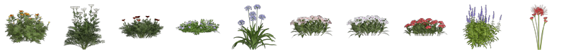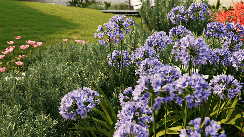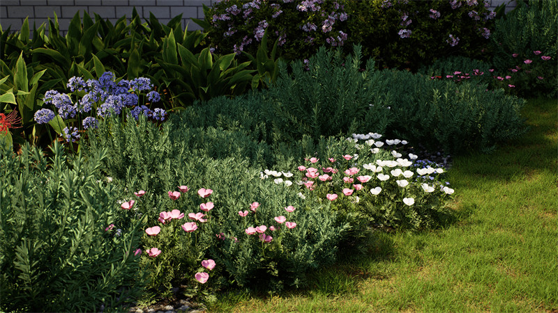 同一品种植物,D5均提供了多种造型的植株供设计师选择,可根据具体情况自由组合搭配使用,小范围点缀或大面积铺设,进一步丰富场景画面的层次感。
