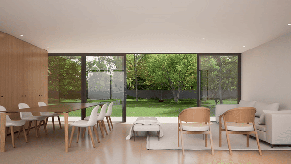 这样的设计也让室内外实现了完美贯通。家庭成员无论是阅读、用餐,还是在房间之间走动,都能时刻沉浸在环绕周身的自然氛围之中。