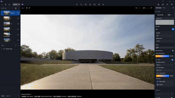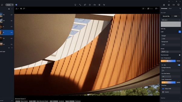 D5渲染器的实时渲染窗口,能以极具真实感的画面,即时、生动地呈现建筑在不同光照条件下的状态。