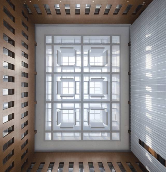 而贤人厅室内吊顶中也采用了简牍造型,呼应着言子传道授业的教育家身份。精细的参数化设计手法对每一块悬吊的简牍都排布得恰到好处,营造出穹顶的效果。天光倾泻而下,经过简牍的反射,柔和而均匀地洒落在言子雕像上,雕像的尺度也经过细致推敲,既不过大显得压迫,也不过小而缺失庄严。