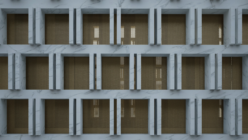 “当实际选择石材时,或多或少跟原设计会有所差异,我们会把选定的材质再还原到整个模型当中,通过不断地渲染,模拟整体的交互,模拟光的变化与材质的反射和散射,模拟在不同状态的环境条件下建筑给人的感受,来判断整建筑物最终将呈现的效果。”
