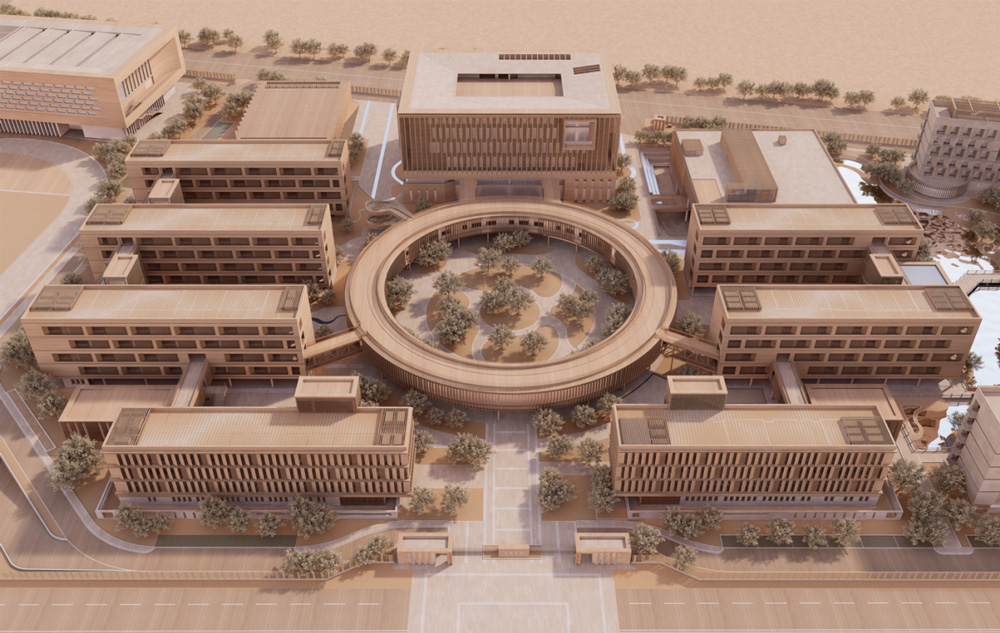 以梅村中学为例,团队在设计中采用了一种复合性的功能结构——一个漂浮的圆环形。首先是其交通功能,把所有的教学资源全部串联起来,下雨时也可以通过圆环内部的公共空间到达各个教学楼。