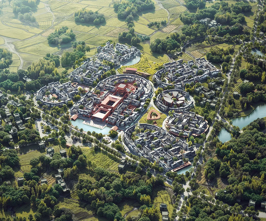 然而,围龙新居的边界远不止于一个回迁社区:它同时整合民宿酒店、文化活动、公共配套、乡村运营、新型产业,以及周边矿坑的文旅目的地。在居住模式、产业植入、公共场景和运营机制的共同驱动下,围龙新居超越了传统社区的范畴,生长成为一个多功能复合、城乡要素融合的“未来乡村系统模型”。