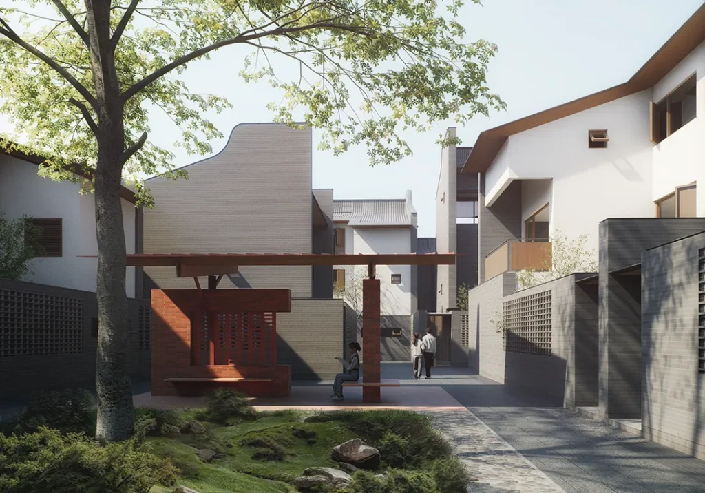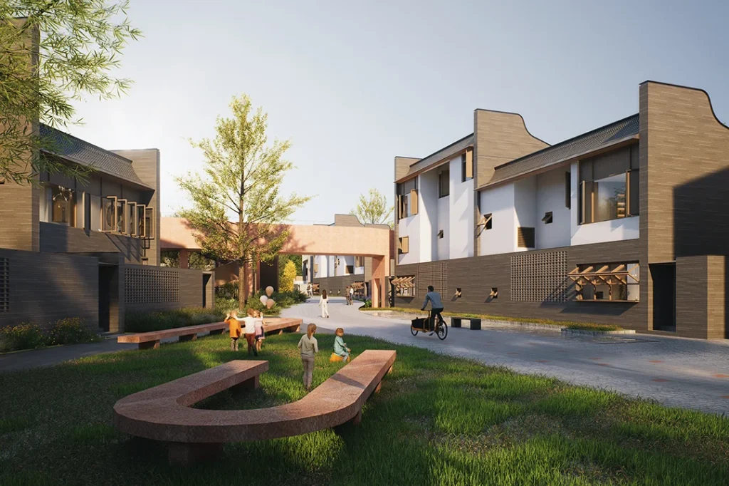 最终,这种“单体—组团—聚落”的生成逻辑,与规划总图深度嵌套,成功形成了多种不同尺度的街巷空间,实现了对传统邻里与聚落交往尺度的回应。