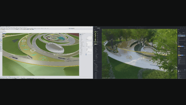这就意味着频繁的模型同步,而D5支持 Rhino 文件直读,将以往繁琐的模型同步简化为软件内一键更新,节省了模型手动导出导入、转换文件格式的时间,更顺畅的工作流带来了效率的提升。