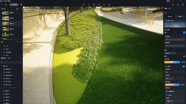 得益于D5优秀的场景承载力,即使面对分区复杂、植物较多的大型景观项目,也能在软件稳定运行的同时,提供丝滑的操作体验。