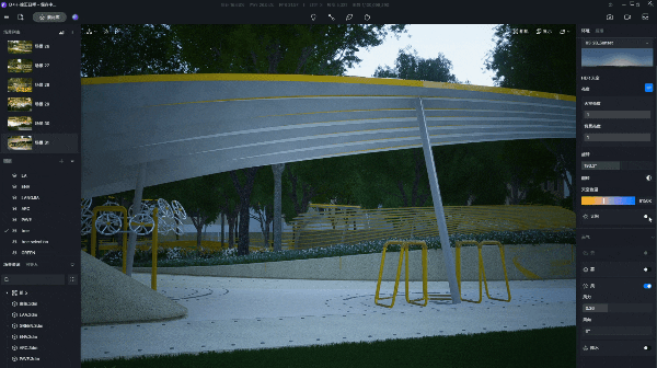 除了模型、材质,D+H 还会借助团队预设功能,将调好的环境参数保存并共享,一键调用,减少重复工作,配景和氛围搭建的效率极大提升。
