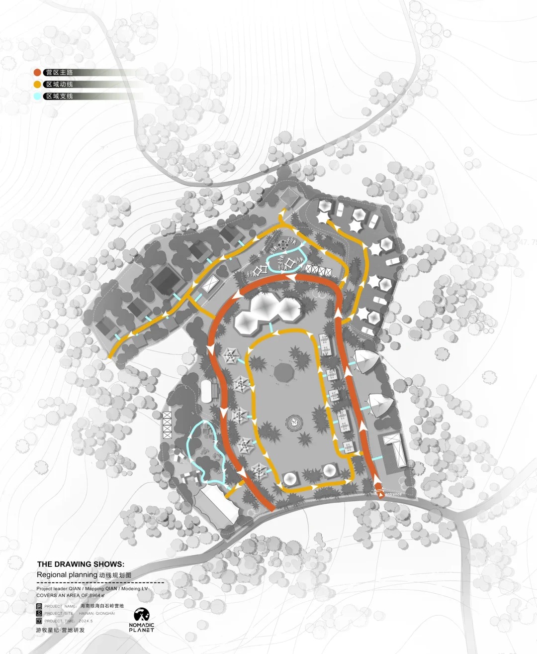 “设计的底层逻辑是相通的。在营地这个场景下,我们要考虑餐饮出餐口放在哪里,可以保证食物能最快送到营位。以及根据场地大小、人流情况规划住宿区规模,同时确保游玩区、休息区动静分离,动线互不干扰。”