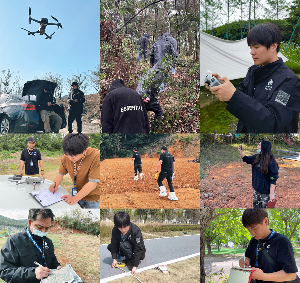 接到项目后,主案设计师会直接和客户沟通需求,并亲自带队到项目地做实地勘测,结合无人机拍摄和平面手绘对场地进行规划,同时站在设计师的视角,挖掘并放大客户场地的优势。
