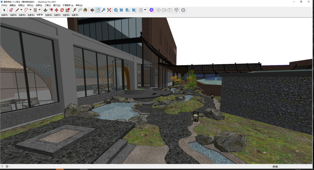 传统的花园设计流程,植物、材质的推敲和表现都放在 SU 中进行,但 SU 中可使用的植物模型稀缺,只能手动导入合适的模型。受限于软件的承载力,难免造成操作卡顿、软件崩溃,影响工作效率。
