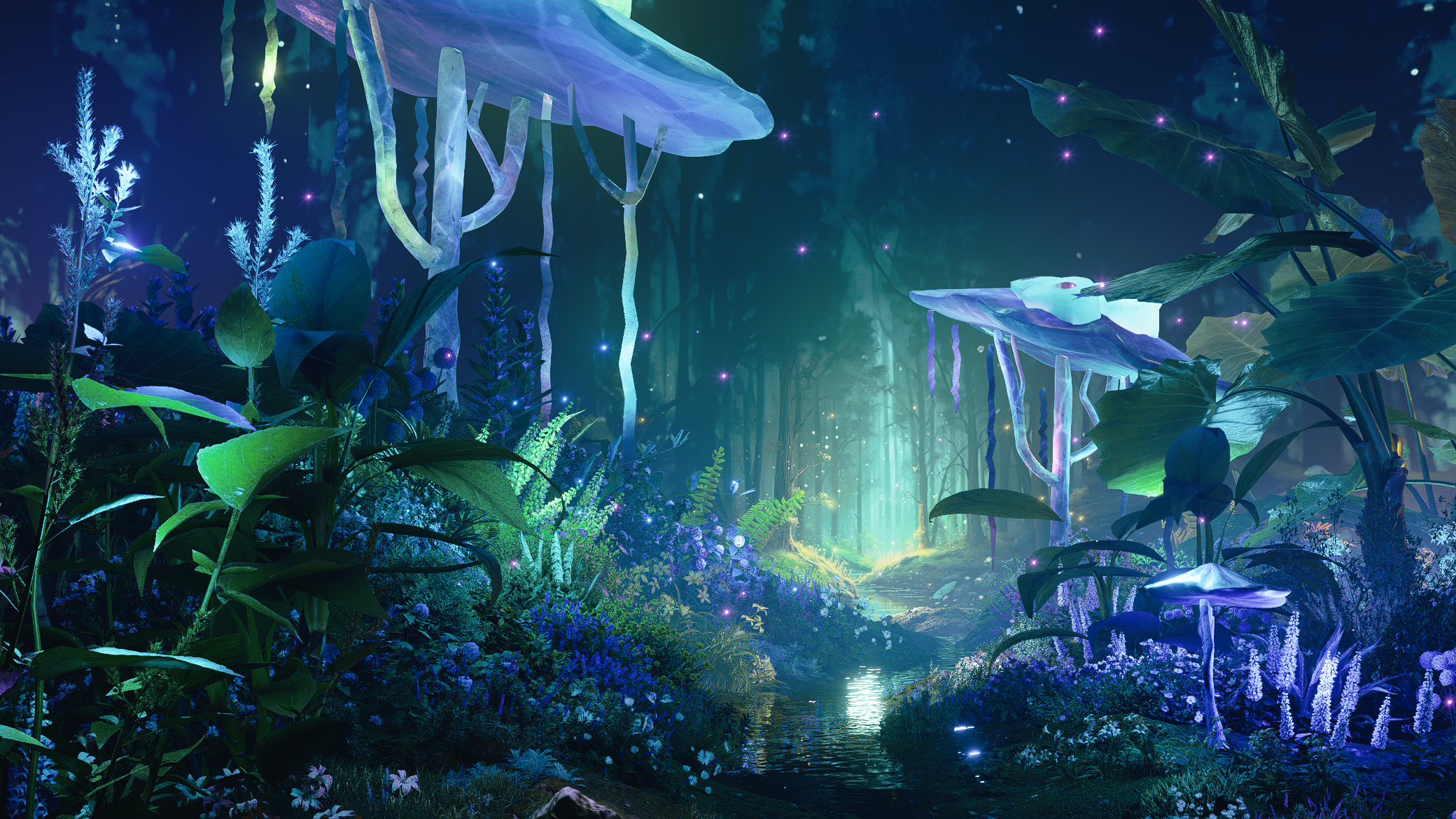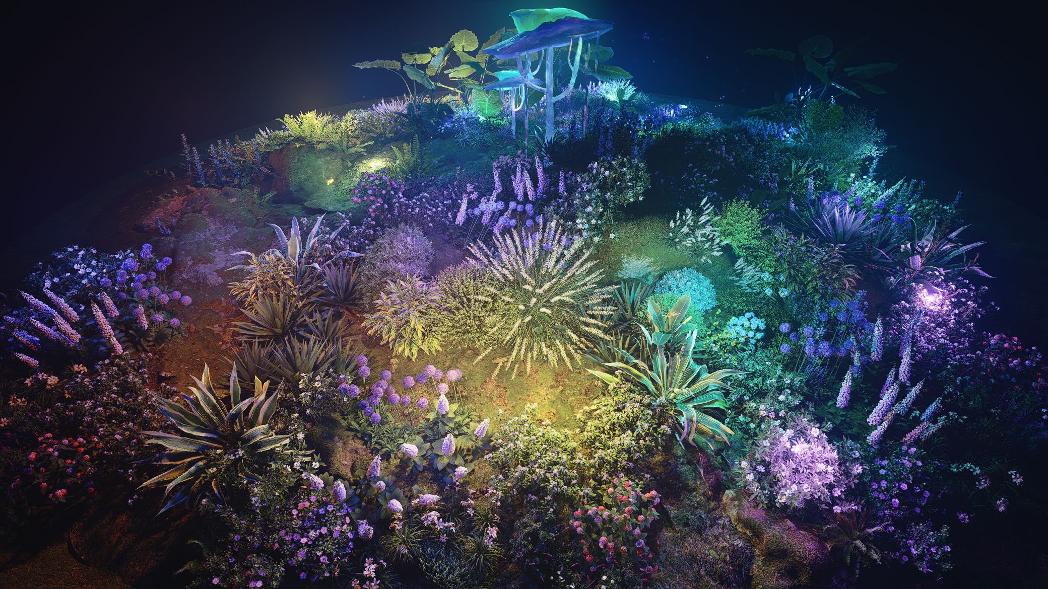 除此之外,植物也是0人常用的布景素材。「窝小芽微缩」是一个以奇幻森林冒险为概念的项目,其中 90% 的植物模型都来自D5素材库。