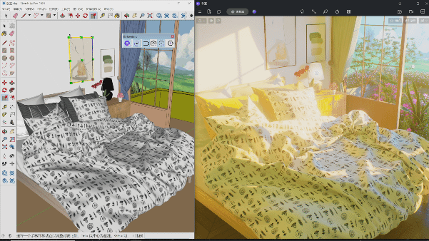 “D5和 SU 的实时同步,让我日常创作的体验感提升了很多:可以一边快速建模,一边观察模型渲染后的效果,沉浸式做设计。”
