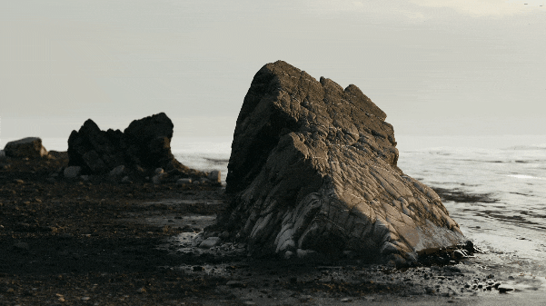 不拘泥于静态的图片,0人也经常在动画中展现他构建的奇妙世界。在简单打镜头的基础上,0人会在场景中添加 .abc 素材,比如动态的人物、海浪等等,让画面更具生动感。