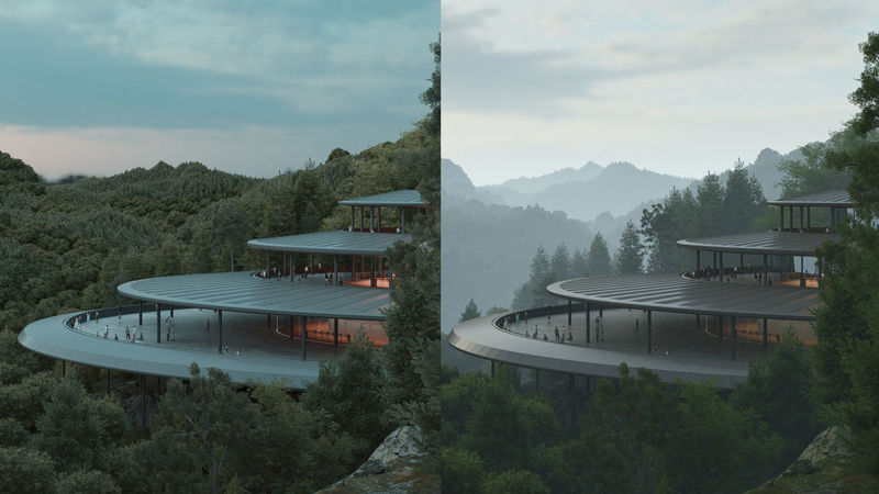 实时路径追踪性能显著优化并带来更多实用特性,将作为 D5 2.11 的默认全局照明方案启用。新版本可以在实时视口中预览透明材质多次反射的效果,同时优化了反射中光照采样的效率效果以及降噪器性能,提升实时体验与最终出图的一致性。